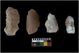 | Description / विवरण | There are n 4 flakes tool; there are large flakes with sides trimmed, Marks of secondary flaking are present on the both the faces. |