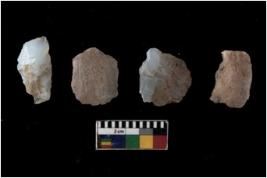 | Description / विवरण | There are n 4 flakes tool; there are flakes tool with prominent flaking marks. It made up of a large flakes with sides trimmed. |