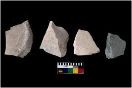 | Description / विवरण | There are n 4 flakes tool; there are multidirectional irregular scar pattern on them; made of short flakes and all four have tapering edges. |