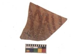 | Description / विवरण | Specimen of red on red ware with decorative Lattice design geometric painting. |