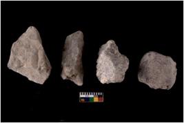 | Description / विवरण | There are n 4 flakes tool; there are large flakes with sides trimmed, Marks of secondary flaking are present on the both the faces. One is pointed functional top. |