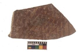 | Description / विवरण | Specimen of black on red ware with black decorative Lattice design geometric painting. |