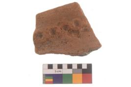 | Description / विवरण | Specimen of red ware with decorative incisions Joined circles . |