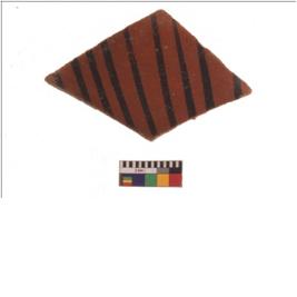 | Description / विवरण | Specimen of black on red ware with black decorative vertical lines geometric painting . |