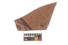 | Description / विवरण | Specimen of black on red ware with black decorative Curves joint to a line geometric painting. |