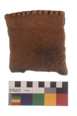 | Description / विवरण | Specimen of red ware with decorative incisions Parallel vertical lines at the rim . |