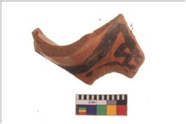 | Description / विवरण | Specimen of black on red ware with black decorative plant motif natural painting . |