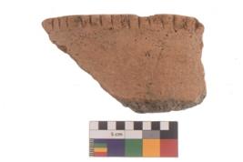 | Description / विवरण | Specimen of red ware with decorative incisions Vertical parallel lines at the rim . |