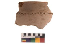 | Description / विवरण | Specimen of red ware with decorative incisions Vertical parallel lines . |