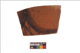 | Description / विवरण | Specimen of black on red ware with black decorative broad curvy lines geometric painting . |