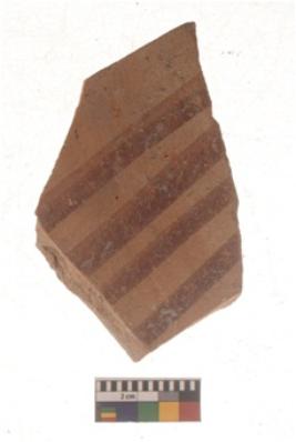 | Description / विवरण | Specimen of black on red ware with black decorative Horizontal lines geometric painting. |
