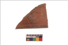| Description / विवरण | Specimen of black on red ware with black decorative broad horizontal and vertical slanting lines geometric painting . |