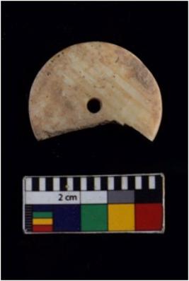 | Description / विवरण | Specimen of a partially broken disc circular shaped bead It is having flat surface and smooth edge |