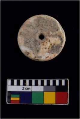 | Description / विवरण | Specimen of a partially broken disc circular shaped bead It is having flat surface and smooth edge |