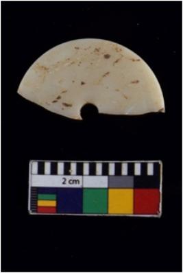 | Description / विवरण | Specimen of a partially broken disc circular shaped bead It is having flat surface and smooth edge,It is white in colour. |