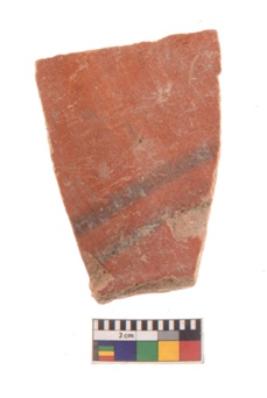 | Description / विवरण | Specimen of black on red ware with black decorative Horizontal lines geometric painting. |