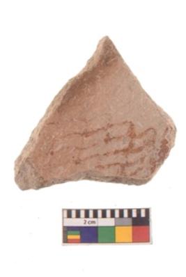 | Description / विवरण | Specimen of black on red ware with black decorative Fish scale pattern geometric painting. |