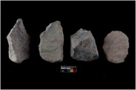 | Description / विवरण | There are n 4 flakes tool; there are multidirectional irregular scar pattern on them; made of short flakes and all four have tapering edges. |