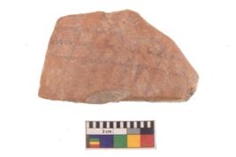 | Description / विवरण | Specimen of black on red ware with black decorative Lattice pattern geometric painting. |