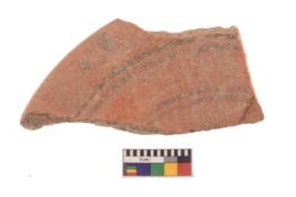 | Description / विवरण | Specimen of black on red ware with black decorative Horizontal lines geometric painting. |