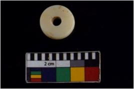 | Description / विवरण | Specimen of a partially broken disc circular shaped bead It is having flat surface and smooth edge,It is white in colour with center perforation. |