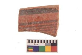 | Description / विवरण | Specimen of black on red ware with black decorative Horizontal lines geometric painting. |