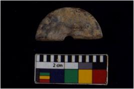| Description / विवरण | Specimen of a broken disc circular shaped bead It is having flat surface and smooth edge,It is black in colour with center perforation. |