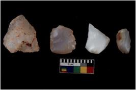 | Description / विवरण | Four worked utilised cores. Flakes removed from few sides. Most of them are uneven and few are tapering at one end. |