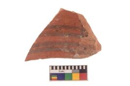 | Description / विवरण | Specimen of black on red ware with black decorative Concentric circles geometric painting. |