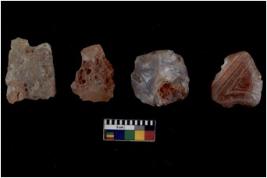 | Description / विवरण | Four worked utilised cores. Flakes removed from few sides. Most of them are uneven and few are tapering at one end. |