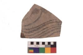 | Description / विवरण | Specimen of black on red ware with black decorative Wavy lines with a semi circle with dots above geometric painting. |