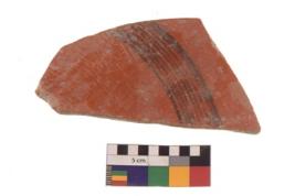 | Description / विवरण | Specimen of black on red ware with black decorative Horizontal lines geometric painting. |