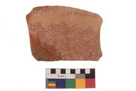| Description / विवरण | Specimen of red on red ware with decorative Wavy lines with small dotted line above geometric painting. |
