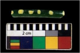 | Description / विवरण | Specimen of green bangle decorated with yellow dots, circular cross section and smooth surface. |