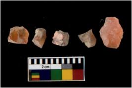 | Description / विवरण | Specimen of a cores with several broad fluted marks. Some of them are tapering at one end. |