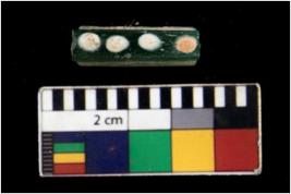 | Description / विवरण | Specimen of green bangle decorated with white dots with circular cross section and smooth surface. |