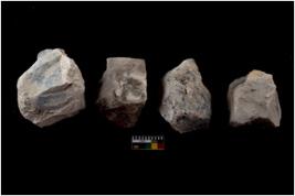 | Description / विवरण | There are n 4 flakes tool; there are multidirectional irregular scar pattern on them; made of short flakes and all four have tapering edges. |