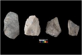 | Description / विवरण | There are n 4 flakes tool; there are multidirectional irregular scar pattern on them; made of short flakes and all four have tapering edges. |