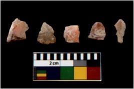 | Description / विवरण | Specimen of a cores with several broad fluted marks. Some of them are tapering at one end. |