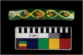 | Description / विवरण | Specimen of green bangle with decoration of yellow chain pattern and dots, circular cross section and smooth surface. |