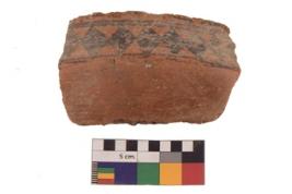 | Description / विवरण | Specimen of red ware with decorative Band of horizontal lines with joined diamond shaped motifs in between incisions.. |