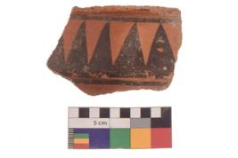 | Description / विवरण | Specimen of black on red ware with black decorative Joined triangles geometric painting. |