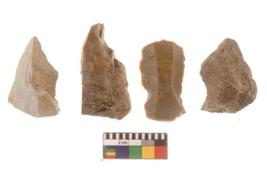| Description / विवरण | There are n 4 flakes tool; there are multidirectional irregular scar pattern on them; made of short flakes and all four have tapering edges. |