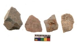 | Description / विवरण | There are n 4 flakes tool; there are multidirectional irregular scar pattern on them; made of short flakes and all four have tapering edges. |