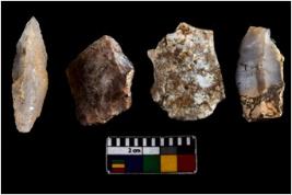 | Description / विवरण | Therea are n 04 objects; one is pointed. Three are sharp from sides. Thin flake removing marks are visible. |