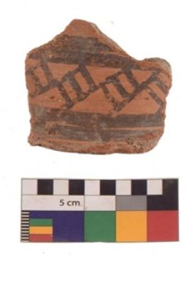| Description / विवरण | Specimen of red ware with decorative Horizontal band with slanting square pattern incisions. |