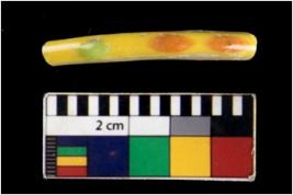 | Description / विवरण | Specimen of yellow bangle with circular cross section and smooth surface. |
