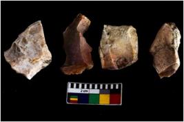 | Description / विवरण | There are n 04 objects; all are sharp from sides, one is flat core. Flake removing thin lines are visible. |