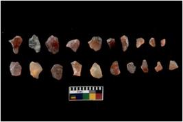 | Description / विवरण | There are n 20 flake chips; there are multidirectional irregular scar pattern on them; made of short flakes and few have tapering edges. |