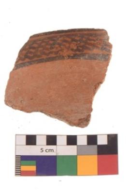 | Description / विवरण | Specimen of black on red ware with black decorative Wavy lines geometric painting. |